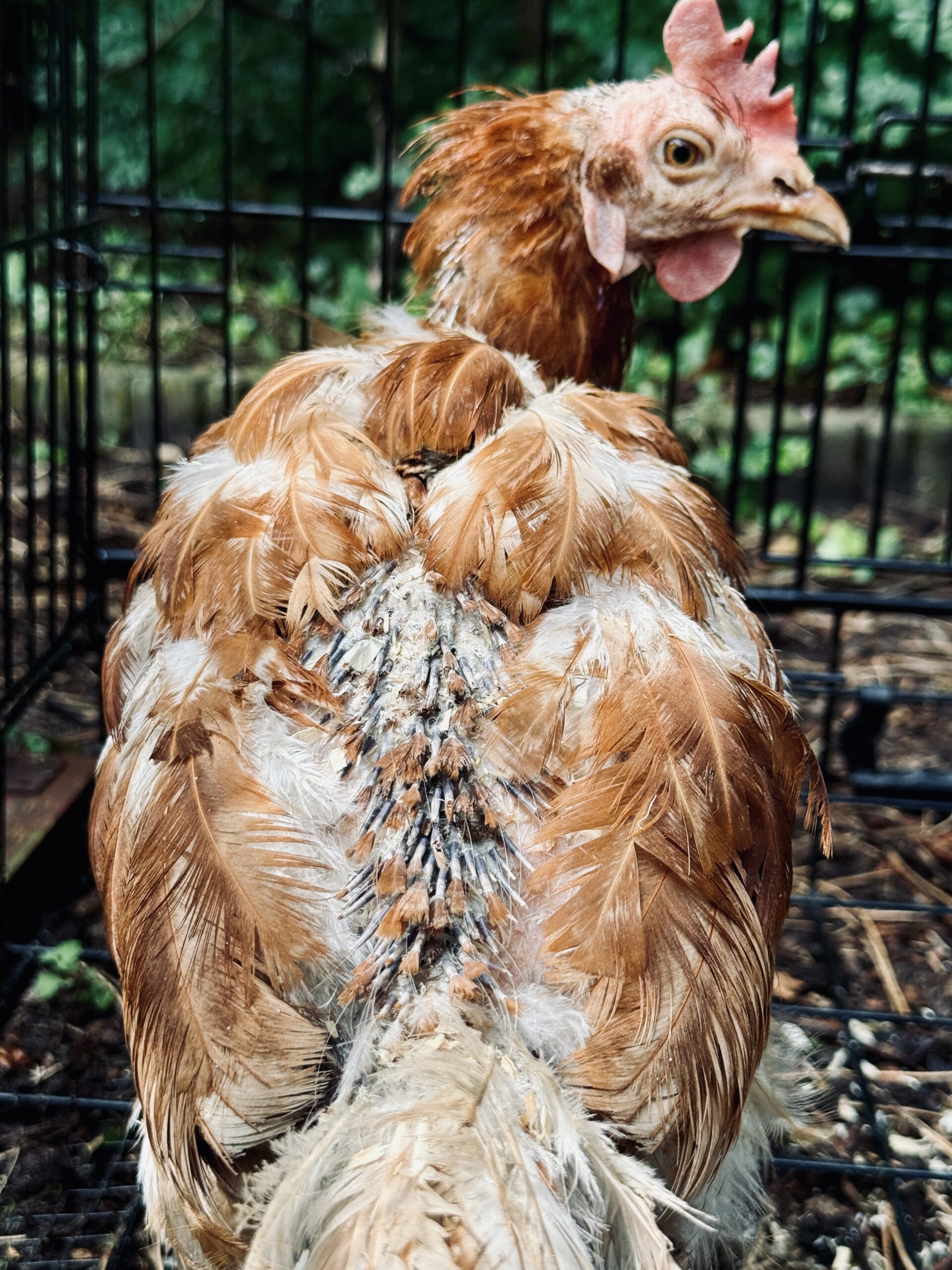Afgelopen week heb ik Blauwtje, met haar soortgenoten Geeltje en Groentje, opgehaald bij Redeenlegkip. Bij mij in de tuin mogen ze met pensioen. En dat ze dat verdiend heeft, laat haar lichaam ons duidelijk zien. De veren zijn door haar soortgenoten uit haar vel getrokken, iets dat pijnlijk en angstig is. Want ze kan niet wegvluchten voor de kippen die haar iets aandoen. Ze heeft (fysiek) geen ruimte om bij te komen na een aanval. Ze kan zich met haar vriendinnen niet terugtrekken en in alle rust bijkomen van de pijn die het gedaan heeft. En terwijl ze haar hele leven in deze onveilige omgeving vastzit, legt ze ook nog iedere dag een ei. Een scharrelei.
