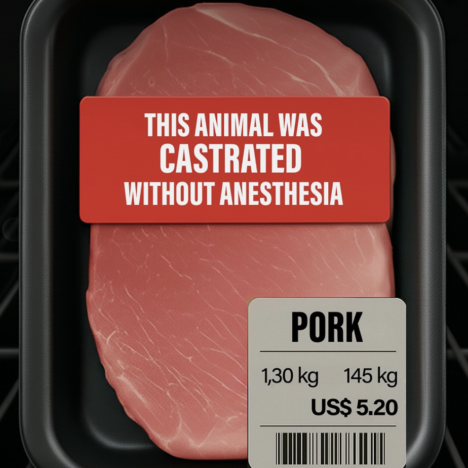 Als Nederland Zwitserland zou volgen, zouden etiketten er heel anders uitzien. Dan zou je lezen dat staarten van varkens routinematig worden gecoupeerd, dat tandjes van biggen worden gevijld, dat castratie vaak nog steeds met CO₂ gebeurt zonder goede pijnstilling. Dat kalveren weliswaar onder verdoving worden onthoornd, maar dat er hoe dan ook pijn bij komt kijken. Dat kippen nooit buitenkomen noch daglicht zien, behalve op weg naar het slachthuis.